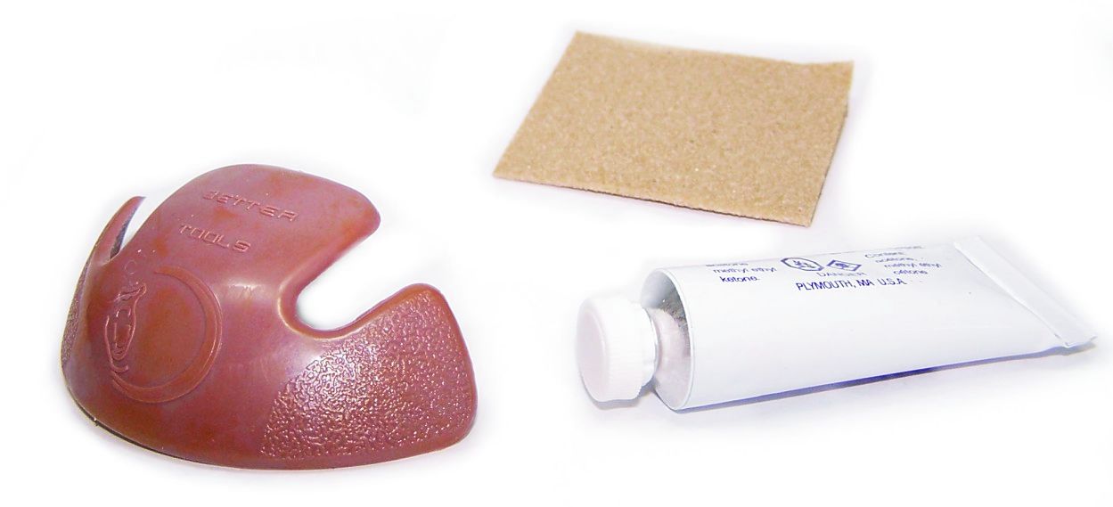 Nach Aufrauhen des Leders können die Schutzkappen mit dem Spezialkleber schnell und einfach angebracht werden.